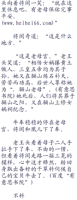 赶车的老王头是一大早被人从被窝中抻出来的,雇主是一个相貌清秀,衣服破烂的英俊少年,说是陪着老娘到咸阳投亲,结果老娘病了,不得已雇辆牛车。