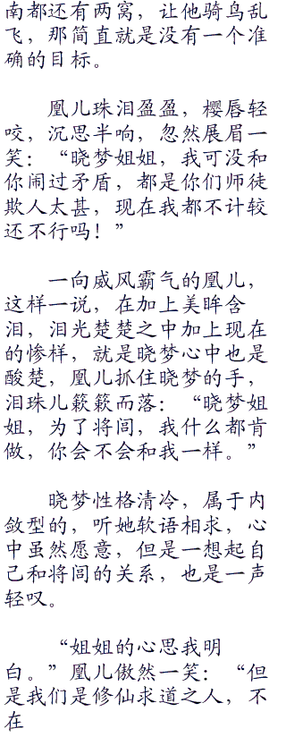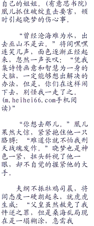 二女唇刀舌剑,将闾两眼一翻,却是无可奈何,晓梦心思谁都明白,偏偏她是