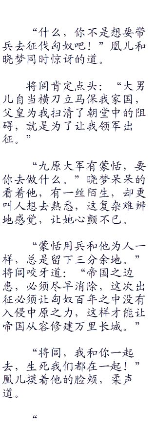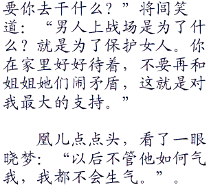 凰儿微微一笑,缓缓的偎依在将闾怀中,倾听他有力地心跳,双眼微闭,脸色安详,柔美无比。