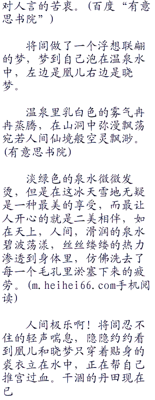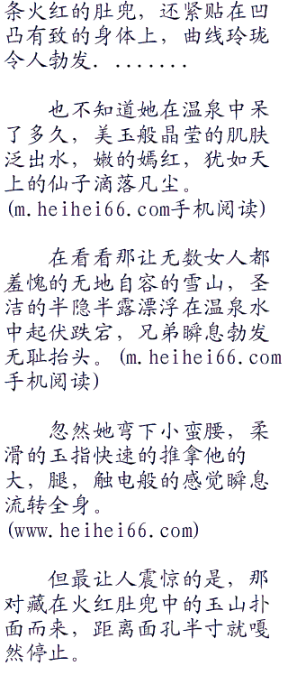 闪烁的眼神,带着羞意的俏脸,好在温泉水中,面孔本来就是一片嫣红,让这股羞意并不明显,但是二人目光一碰,似乎都洞悉了对方的想法,心中的矜持让二人同时错开目光。