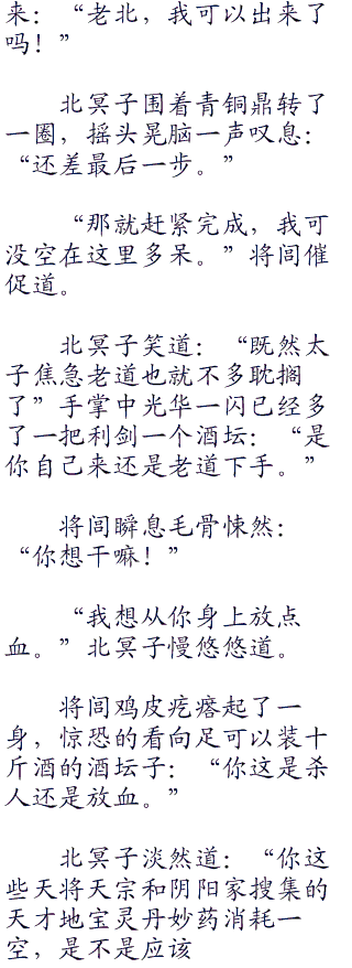 “你别一口一个老子。”凰儿轻笑道:“这件事和北冥前辈没关系,而是他要来了。”