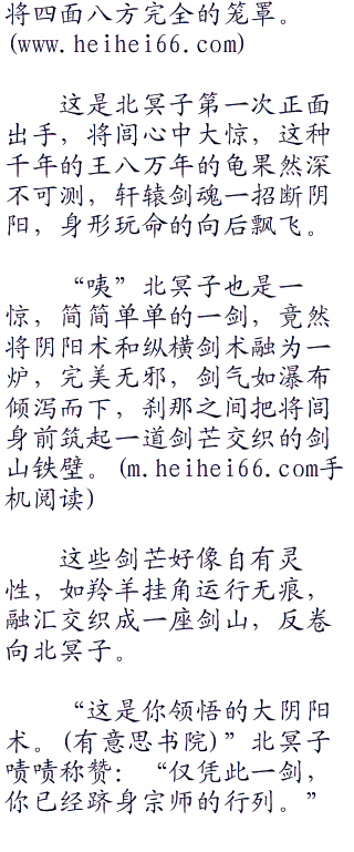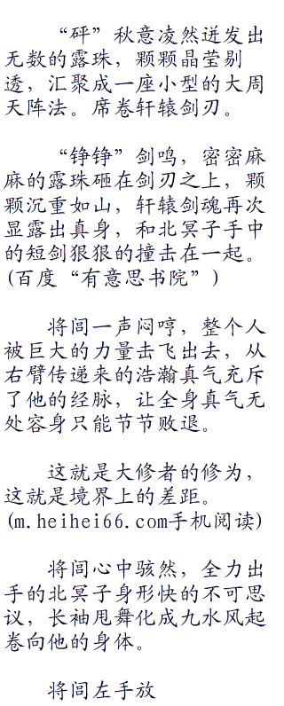 将闾只感觉一股秋意弥漫心头,落叶萧瑟肃杀之气铺天盖地而来,蕴藏着大道玄机阴阳流转,即便是灵台一片空明,竟然看不透北冥子这一剑从何处而来,又从何处而去。只有满天的肃杀寒意