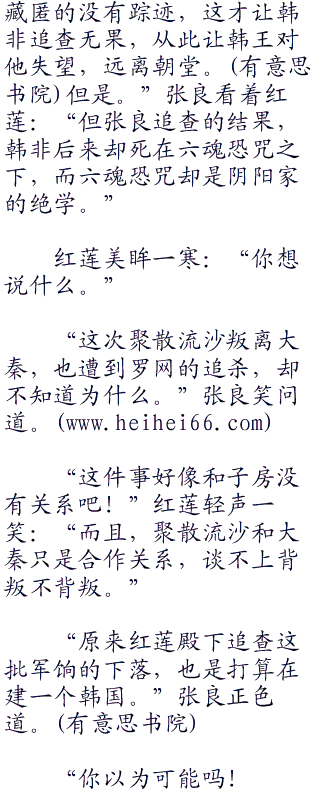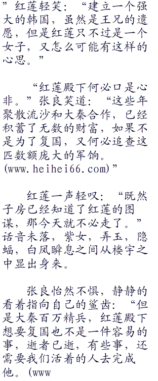 “没有什么交代和不交代的。”将闾淡淡一笑:“战国乱世已经结束,大秦已经统一天下,而侠以武犯禁,儒以文乱法的时代终将过去,法律就是高悬在每个人头顶的利剑,如果墨家安分守法,必定还有一个辉煌而未来,我只是帮助墨家清除一些害群之马,让蓉姐姐完全掌控墨家而已。”