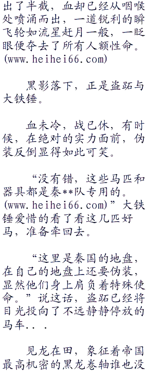 白凤的身体陡然飞起,一只洁白的羽刃电闪飞出,一条黑色的人影自阴影中缓缓浮现,一道暗红色的血线从脖子上慢慢扩散,生命渐渐归于死寂。