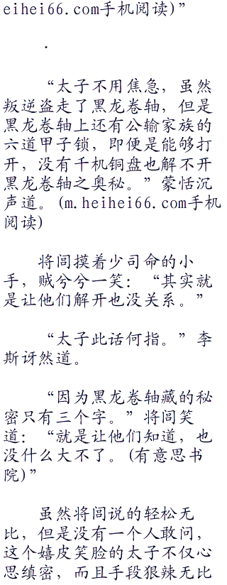 所以,说小圣贤庄收留窝藏山东六国逃亡余孽,还不如说儒家将他们当成了自己的爪牙。所以,这次的黑龙卷轴,虽然是儒家先得到的消息,但是动手的却是墨家。”