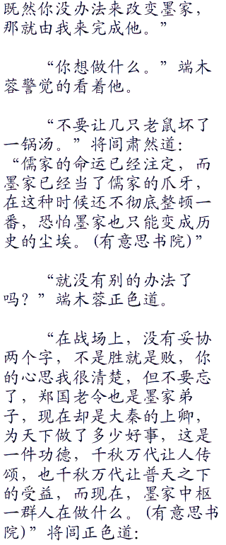 黑衣人快马奔上廊桥,很快就出现在将闾面前。