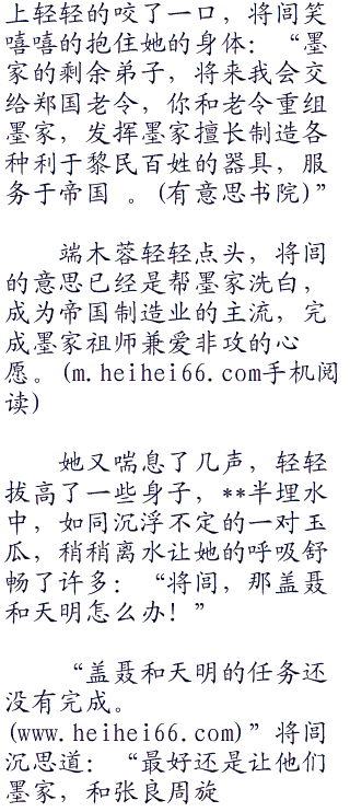 当年在墨家机关城的宝库中分别的时候,将闾为了让端木蓉有自保之力,强行将她的修为提升到了筑基五层,但是三年时间却没有寸进,可见端木蓉为了墨家付出何其多。