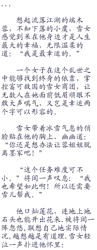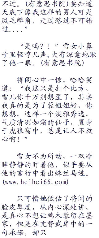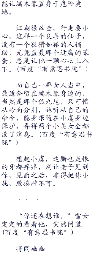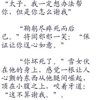 看他小脸变得惨白,雪女银铃般的一声轻笑:“太子,你害怕什么,难道你心中有鬼,不过,你要想着蓉姐姐也不是没办法,我可以帮你。”