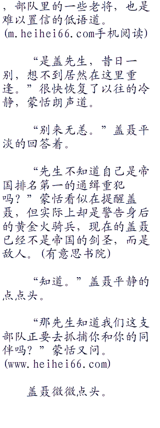 “蒙将军,又见面了.。”对方的出声显然肯定了对方的吃惊。