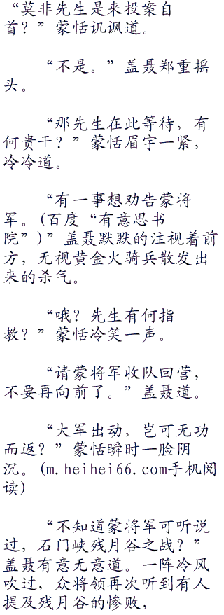 “前方什么人?装神弄鬼!”兵法云:攻心为上,知道再这样下去,必会军心不稳,蒙恬大喝一声。