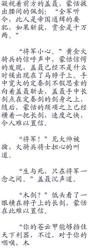“是!”将士授命,提戈驾马前去。紧接着,蒙恬在下令派人查探的同时,久经沙场老将的他立刻再一次下令道:“部队攻击阵型,以防有变!”