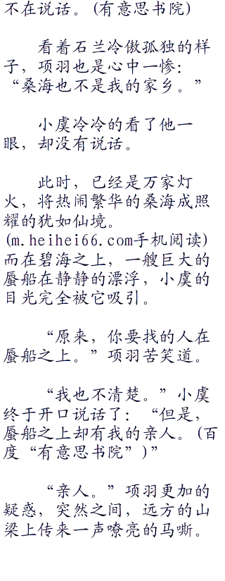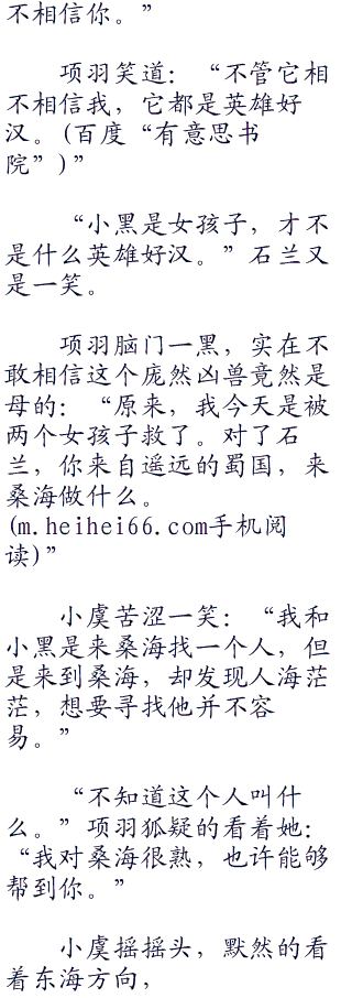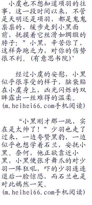 项羽这才回过身来,连忙从小黑背上跳了下去,小虞冷冷的看着他:“你认识这个怪物。”