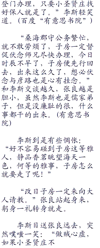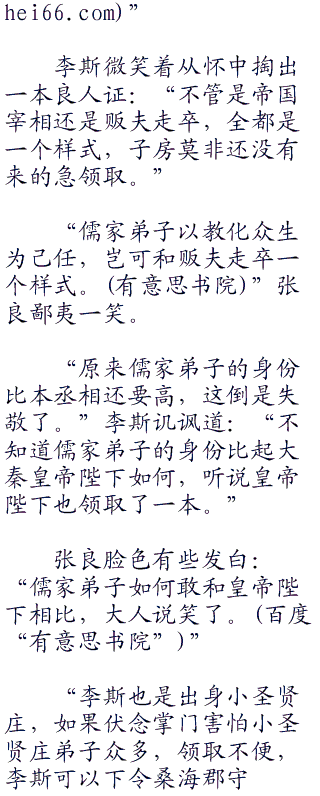 “公道。”李斯看着他脸上的笑容:“既然是为天下请命,子房不防说出来,我斟酌一二。”