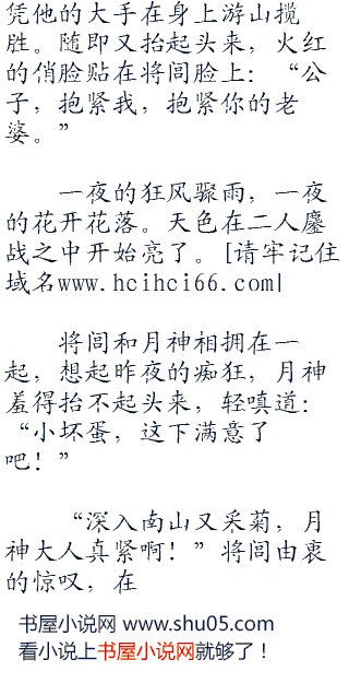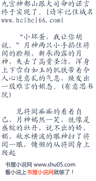 等众女全都走了,将闾和月神这才松了口气,二人相识一笑,手紧紧的握在一起,月神拉着将闾,向
