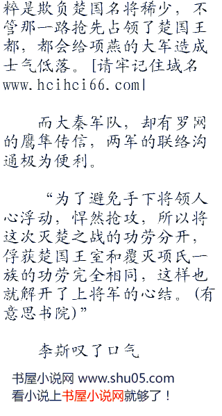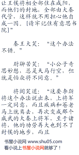 而楚国也会因此分兵,但是楚国真正的名将只有项燕一个,别人都和王贲,李信差不多,不管项燕顶盯住了我们那一个,另一路就可以长驱直入,攻占楚国国都之后,在合兵对抗项燕。”