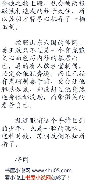 秦王很清楚,将闾身边的人都是江湖高手,有他们在安全一定无虞。所以也就安心等待。