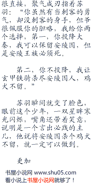 现在能够形容苏羽的,只有呆若木鸡,作为安陵国的谋士,苏羽暗自庆幸,自己一时的软弱,换来了几万黎民的生命,要不然这群虎狼闯进安陵见人就杀,那简直就是一场灾难。