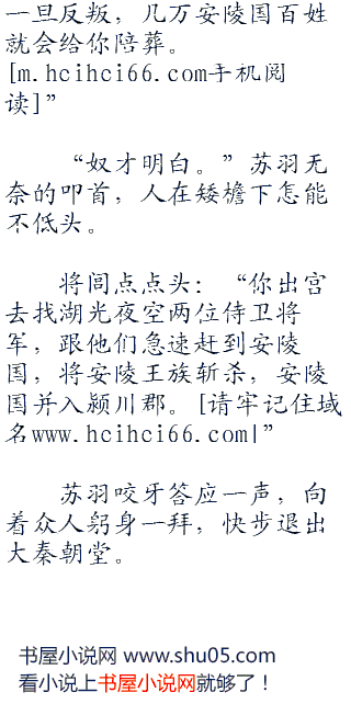 嬴政似笑非笑的看着他:“小,从来就没见过这样大点的孩子,府中全是美女,将闾,天下终究是赢氏的天下,如果你没有这种才华,我也不会苛求你,但现在的大秦已经广有四海,每天的奏折就是几百斤,现在的国政全部交给了王绾处理,父王专心处理军事,即便是这样,每天也是鸡鸣起床三更才睡,政务还是处理不完。