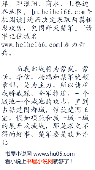 而楚军有淮阴坚城固守,聚集了四十万大军,应该是以逸待劳才对,只要挨过了秦军的几次猛攻,让其锐气尽失,等粮草不济之时,王翦必定带着大军退回秦国,等待来年在战。