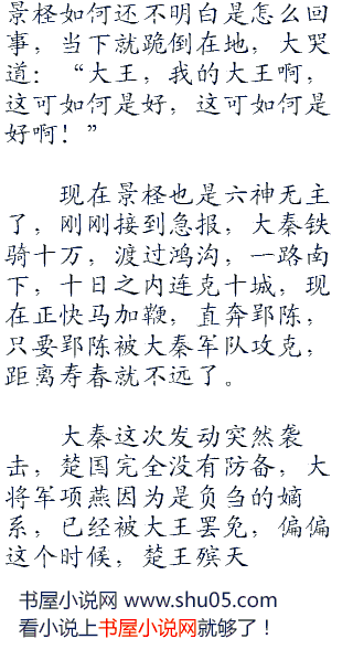 而现在,两大家族的封地在淮北,之所以督促自己出战,就是想要收回地盘。而楚王负刍,迫于三大家族的威势,肯定会严令自己寻找战机。