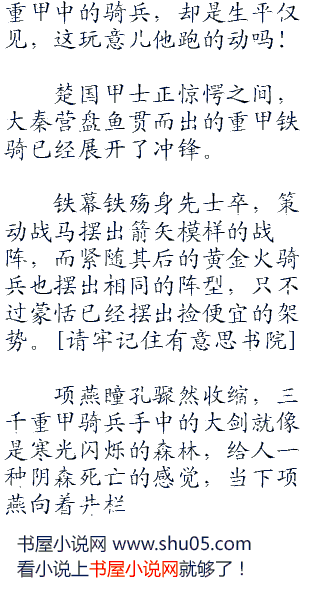 爷爷战死疆场,八千子弟丧身火焰,早就让项羽肺都气炸了,只不过找不到发泄的机会,看见大秦玄甲铁骑,湖光夜空没认出项羽,但是项羽可是对他们念念不忘。