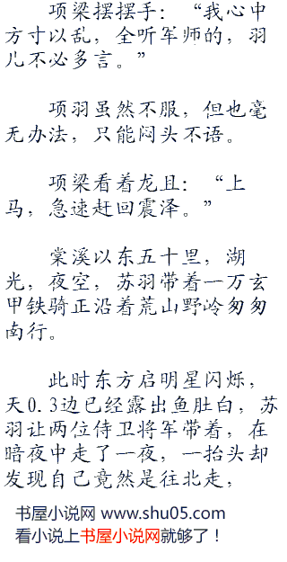 “行了,别再这儿装可怜了,烧死八千子弟,已经是大功一件。”将闾嘴角带着冷笑,就算是项羽霸王盖世,没有子弟兵也是莽夫一个不足为惧:“知道项羽的老家在那儿吗!”