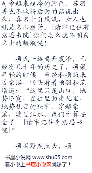 将闾摇头道:“我在奇怪,苏羽为什么对这种地方这样熟悉,为什么这样憎恨项氏一族。”