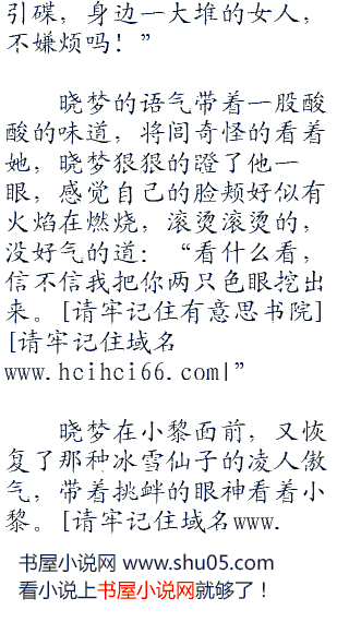 晓梦赶紧住嘴,现在才发现自己还是浅薄了,从来就没想过,一个人竟然能无耻到这种地步,这种话也能随口说出来。