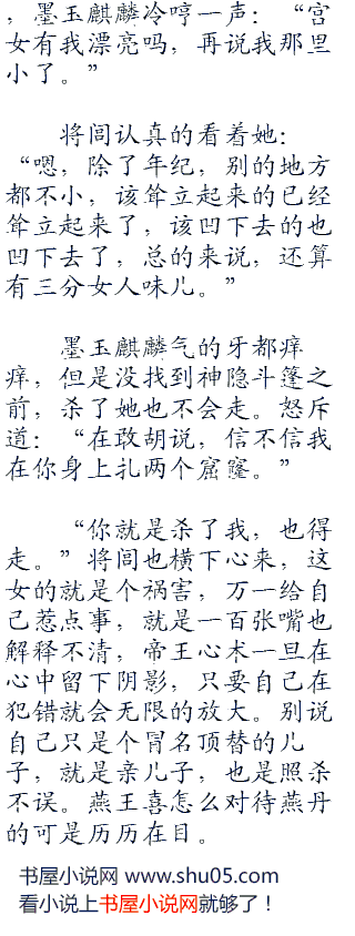 古人相信鬼神,相信誓言,但墨玉麒麟不相信将闾,怒道:“你用秦王的生命发誓,我才肯相信。”