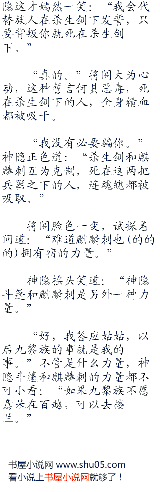 “你确定那是一个剑客还有一个小孩。”将闾不是不相信逸风,九黎人的忠诚无可置疑,但是修为的不足让将闾很怀疑他的眼力:“那个剑客还受了重伤。”