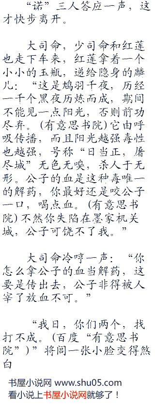 “马上收拾东西,连夜就走。”范增看了项梁一眼:“敌人的敌人就是我们的朋友,现在秦国势大,统一天下已经成了不可遏制的趋势。而大秦对腾龙军团斩尽杀绝,就是不想留下后患,而大秦罗网遍布天下,现在只有墨家经营几百年的机关城才算安全,我们即便不加入墨家,但也可以同心协力抵抗暴秦。”