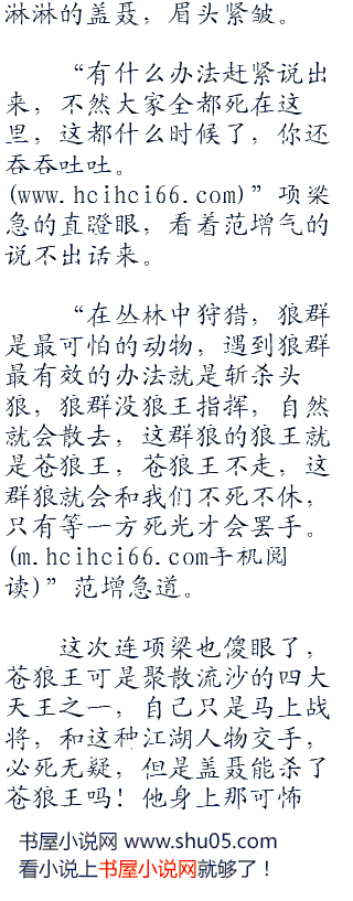 “狼群。”将闾赶紧回答:“蓉姑娘,盖先生伤势很严重,一不小心就是死了,你还是先给他疗伤吧!”