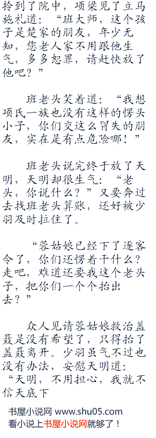 端木蓉瞥了一眼天明,道:“你的大叔已经脱离危险,但是他伤得太重,后面的情况能否好转,还是要看他自己的。”