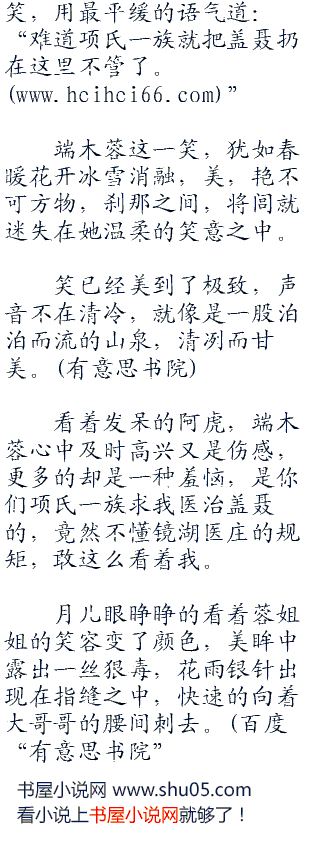 “蓉姐姐的花雨银针很厉害的。”月儿抿嘴一笑:“大哥哥可打不过她。”