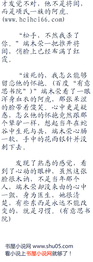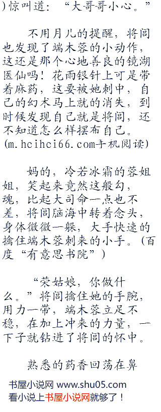 “切”将闾不以为然的道:“这个凶婆娘,整天板着一张脸,好像谁都欠她钱似得,老子来镜湖看到小月儿,就已经心满意足了。她要是敢惹我,我就狠狠的揍她屁,股。”虽然这句话说得口不应心,倒也雄赳赳气昂昂。