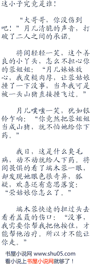 月儿格格娇笑:“这么说哥哥早就认识蓉姐姐。”