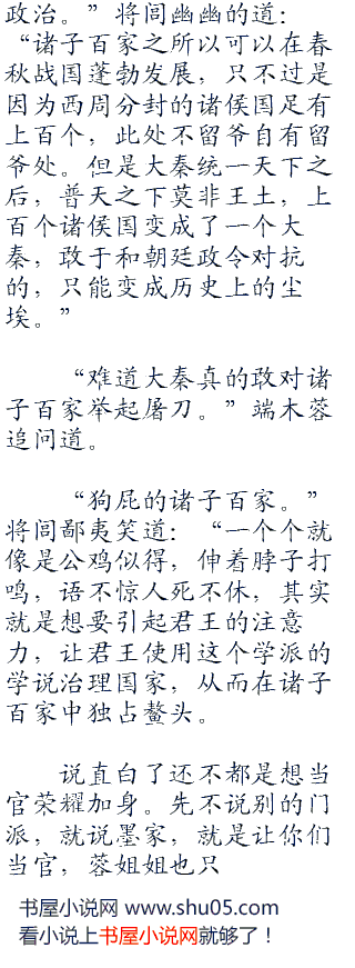 “那把剑让卫庄疯狂。”将闾笑了笑:“不过卫庄也有了很大改变,看来鬼谷弟子之间的斗战,已经为期不远了。”