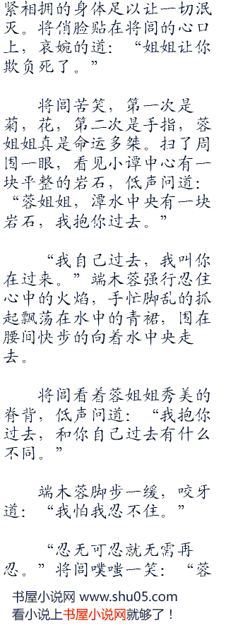 也不知道过了多长时间,端木蓉直觉的身体真气涌动,全身毛孔说不出的舒服。但是一块块脏兮兮的污渍从毛孔中渗出来,散发着一股腥臭。羞涩的道:“将闾,放开我,让我先清洗一下。”