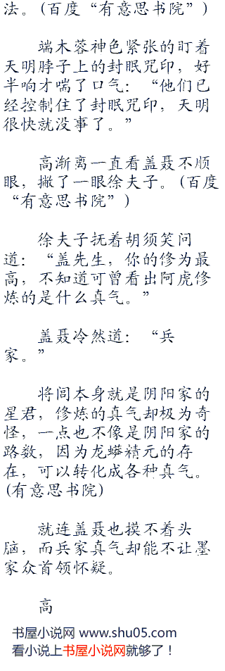 将闾顺着他们的方向看去,竟然是盖聂和天明的住处,原来高渐离还不放心盖聂,只不过你知不知道,天明是荆轲的儿子。