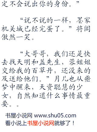 “这是墨家祖师爷亲手打造的绝天锁,这个世界上,能够开启这扇16门的寥寥无几。”月儿迅速的恢复了镇定,轻声说道,小手抹去脸上的泪珠:“留在这儿的话只有等死,现在,我们只能往前走。”