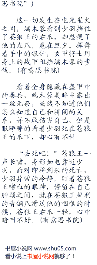 月儿咬住樱唇,半响才道:“你吃啊!”话一出口,心如鹿跳,却装着胆子将胳膊伸到将闾嘴边。