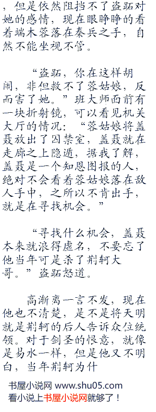 两个人全都没搭理他,这小子真是太贫了,盖聂那根木头带着一只贫嘴乌鸦流浪江湖,没将他一剑宰了真是万幸。
