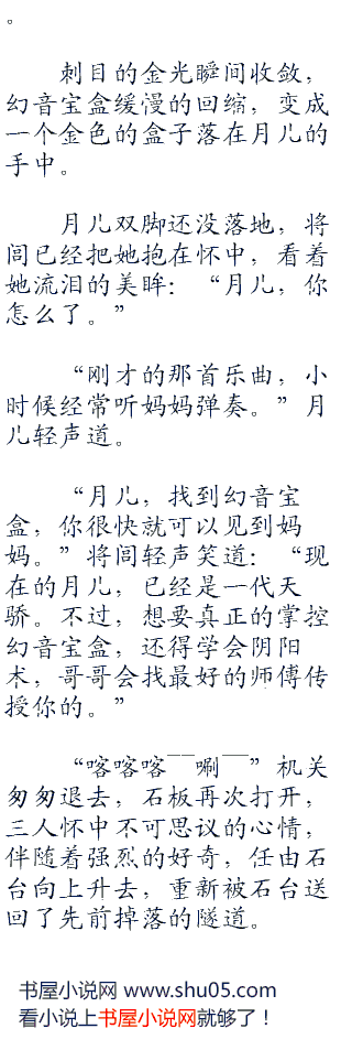 看着沉思的二人,月儿早已清楚了他们的选择,但是月儿心中却有些凄苦,或许和天明同样的身世,让她总是在关心这个被命运捉弄的小孩。