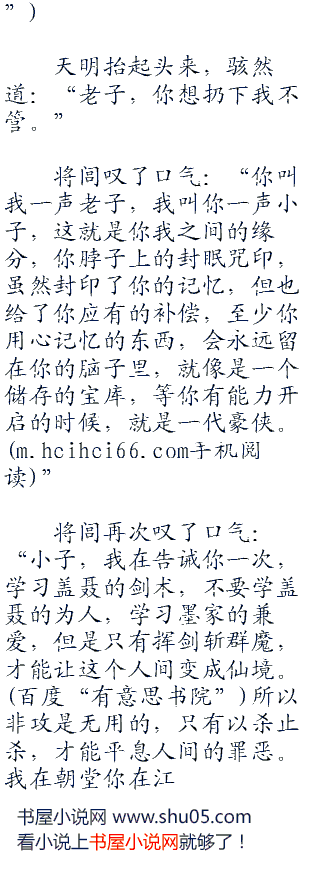 “他是我老子,又怎么会杀我,不过下次见面就难说了。”天明也清楚,公输仇是将闾的手下,悲声道。