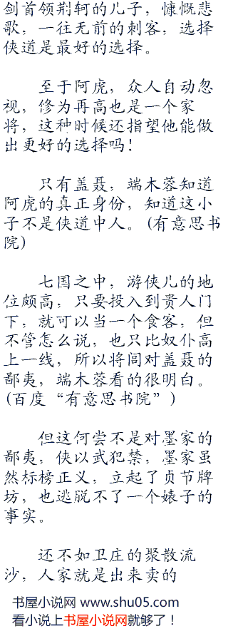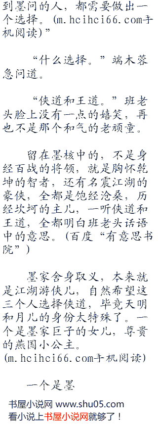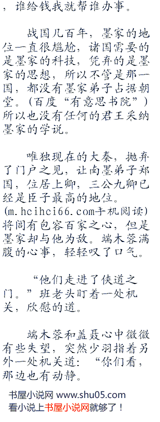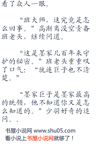 公输仇气极而笑:“上一代墨家巨子名叫六指黑侠,就连巨子的称号都不清楚,墨家有你这样的弟子,也算是完蛋了。”