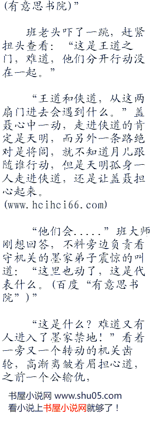 公输仇抚着山羊胡子怪笑:“早就告诉你,天堂有路你不走,地狱无门闯进来,这个地方一旦进来,想要出去难上加难,因为这是一个死囚牢房。≯杂≌志≌虫≯”扭头看着地上的枯骨,沉思道:“至于这个人,如果没有猜错,应该是上一代的墨家巨子。”