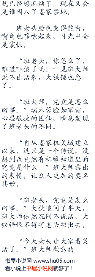 公输仇笑道:“这个问题很容易猜测出来,因为他遇到了无法克服的困难,所以才传位于下一代巨子,进入密地反省,但是下一代的巨子为了禁地中深藏的东西,和六只黑侠发生了争执,所以索性将他囚禁在这里。”