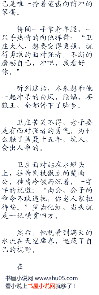 “大匠公输仇呢!”将闾从烈焰背上跳下来,看了看他身上的战甲:“不错,就应该是这个样子。”