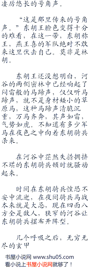 谈笑间,上万的东胡骑兵已经进进入了埋伏区域。