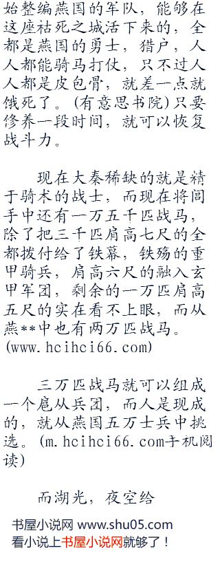 王贲开始指挥军队接受战利品,接受城池,而五万燕国大军确实是一群饿狼,看见马肉竟然抢了起来。